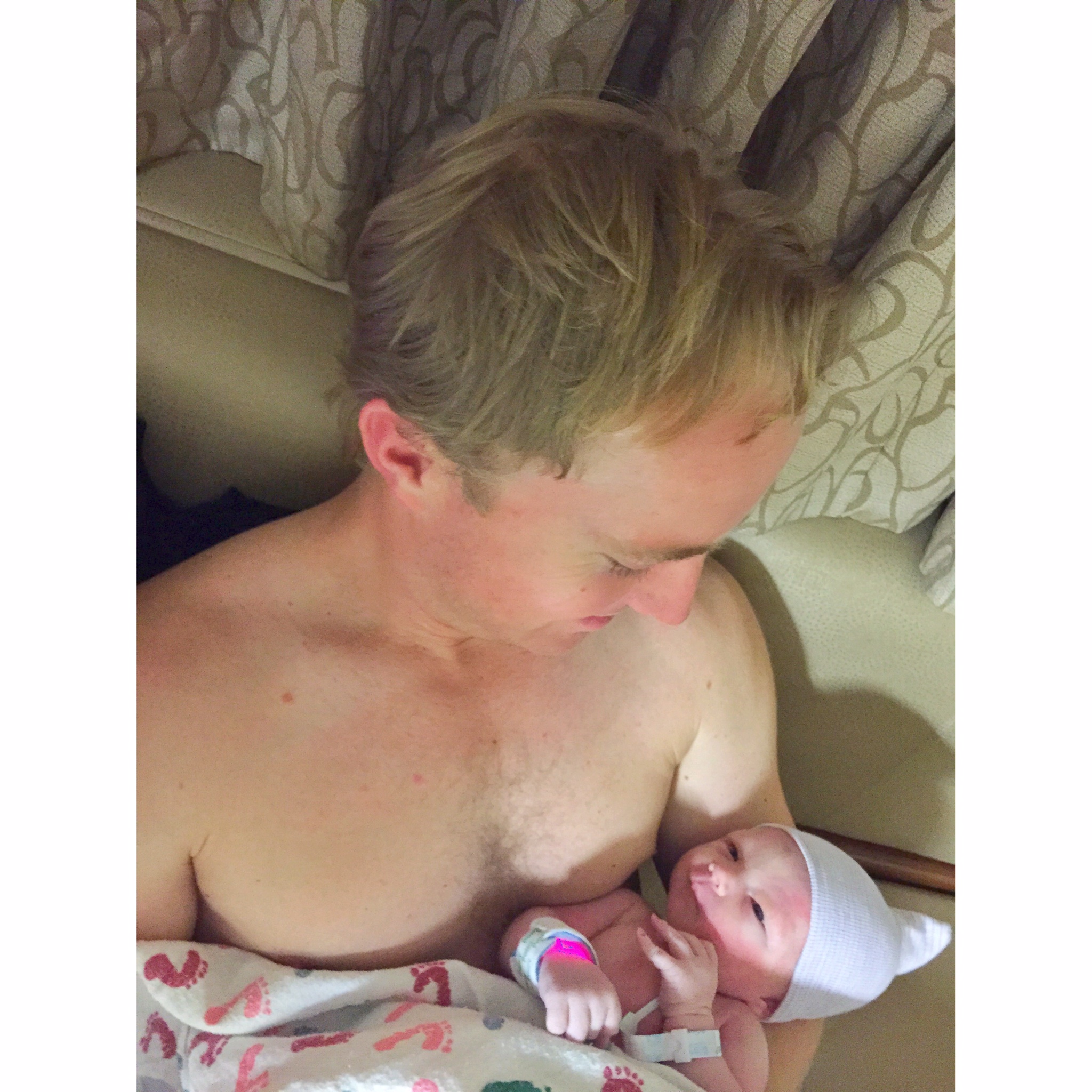 We went in to our 41 week doctor appointment in the morning and saw Anna, our midwife. She suggested doing a membrane sweep to get things rolling as new research shows letting you stay in my belly until 42 weeks can become dangerous. She mentioned that regardless after the sweep I would have contractions and that they may or may not turn into labor. It was summer weather in the middle of winter so to say I was uncomfortable is an understatement. We got home and the contractions began. I changed into a bikini with the thought that being tan would make me feel a little cuter when I go into labor. I sunbathed in our yard, hung with our dogs, walked them around the neighborhood and relaxed (something I wasn’t good about doing over the past few months…packing up a whole house, unpacking a whole house, organizing, holiday hosting…I was on my feet a ton and sleeping very little). The past week we had tried all the old wives tales to help you make your grand appearance but had one last trick left to try…eggplant parmigiana. I read that really its just the combination of herbs and spicy sauce that can induce so I’m not quite sure where the eggplant fits in but we ate it for dinner and two hours later…boom! We started clocking the now frequent contractions. Around 11 pm I couldn’t stand lying down anymore so I moved to our bathtub. Dan was timing the contractions and at around 1 am (a total prune in the tub) we called our doctor to let him know that my contractions were 5 minutes apart for the past 2 hours. He told Dan that unless I was in a lot of pain to wait until they were 4 min apart (he’s unconventional and not overly dramatic and thats why we like him). We waited another hour when they were about 4 1/2 min apart because as a newbie mama I literally thought I was going to give birth right there in the tub (sadly, I was soooo wrong).